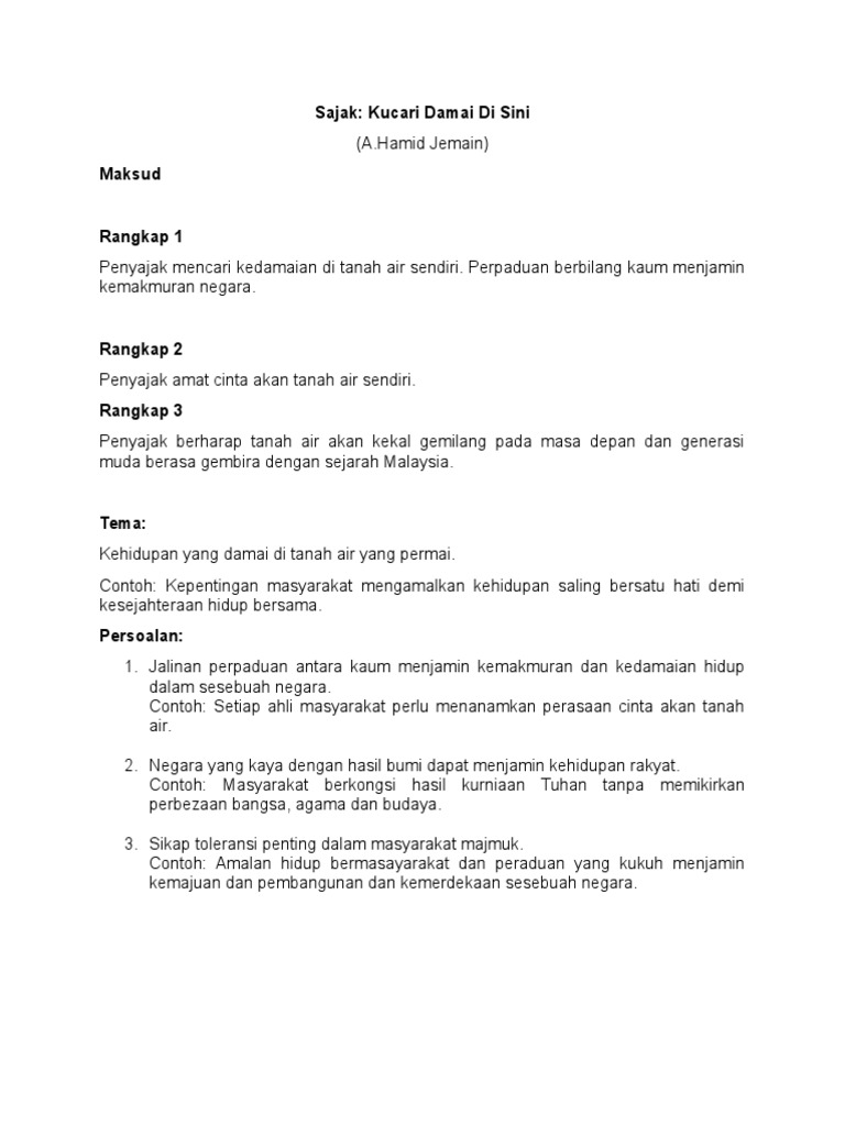 Latihan Tema Dan Persoalan Sajak Kucari Damai Di Sini اختبار تنافسي
